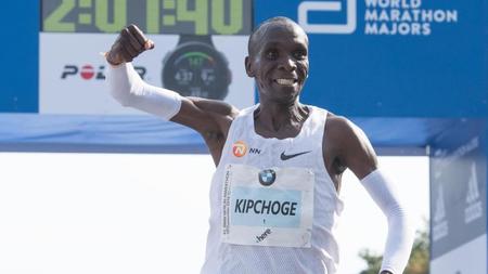 The men s race was won by eliud kipchoge who set a new world record time of 2 01 39.